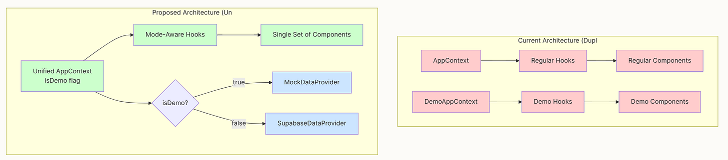 Audit the current demo mode implementation. Is it a separate code version? If yes, propose a refactor to a single codebase for handling different modes.