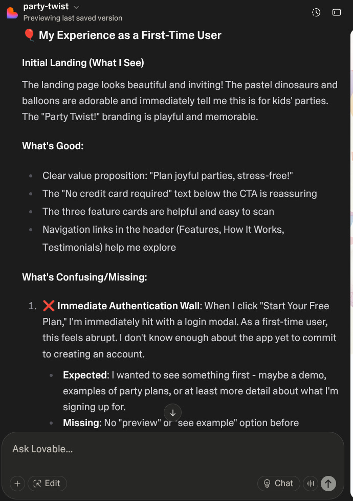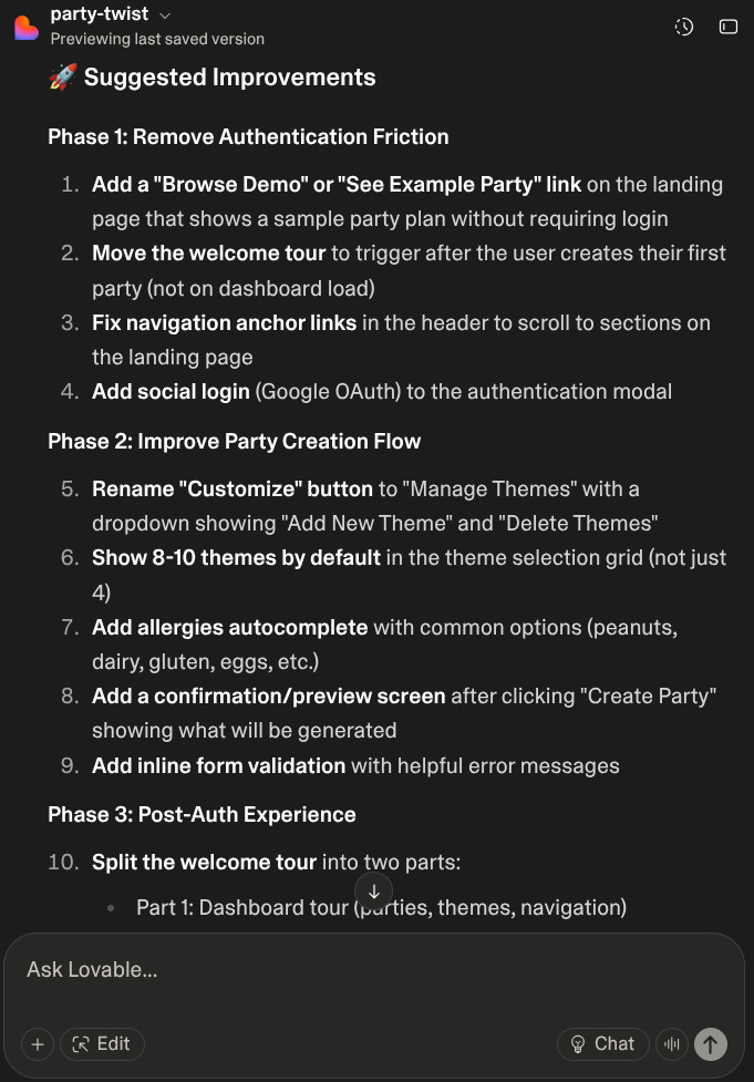 Lovable didnât just critique my app; it made a plan to fix all the feedback. đ¤